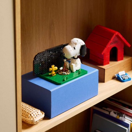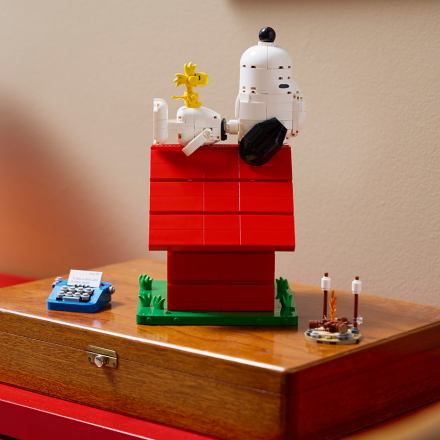 Glavna zvijezda seta je pomična figurica Snoopyja. Možete mijenjati položaj njegovih šapa: posjesti ga za pisaću mašinu (da, onu s legendarnim početkom „It was a dark and stormy night…“) ili ga položiti na krov u njegovoj prepoznatljivoj pozi potpunog mira.